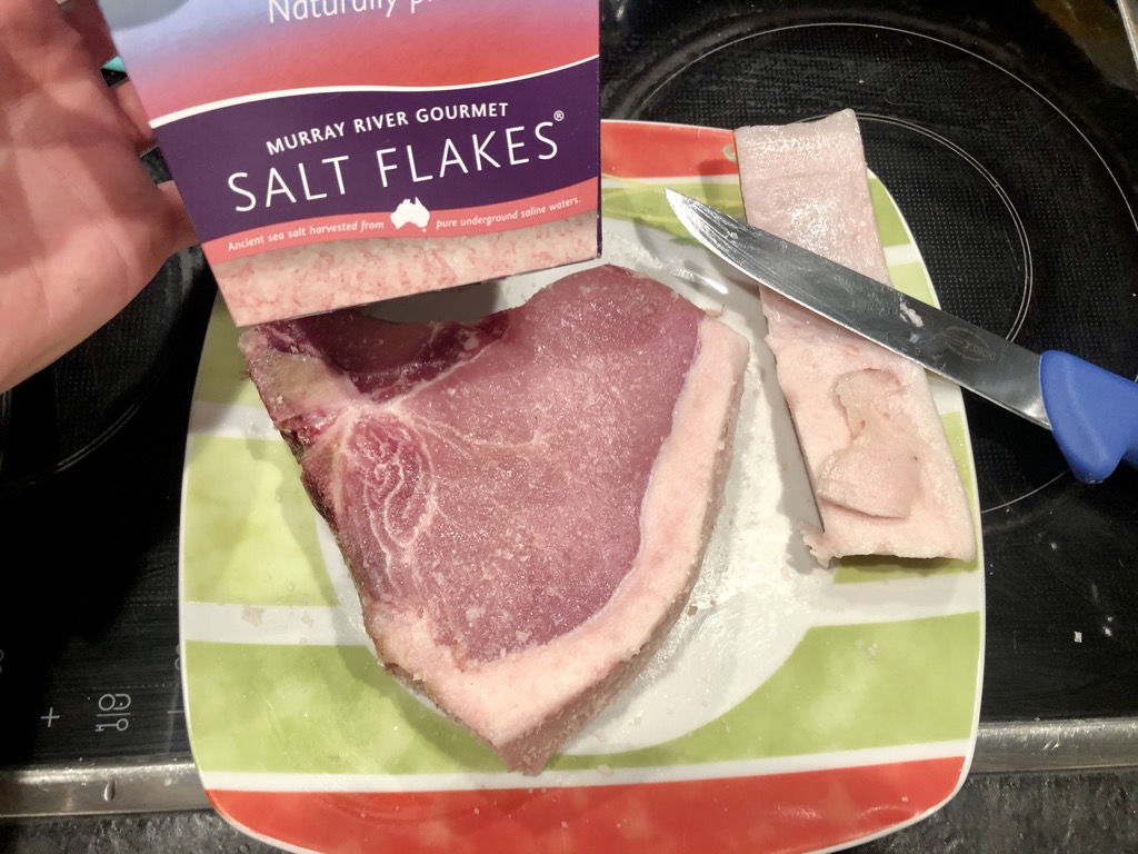 Today I tried a dry aged pork T-Bone from my favourite butcher. The taste is just impressive.